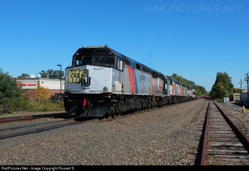 What remains of the deadline in Garwood is seen being pulled out for the return to the MMC. Everything sitting in the deadline has been picked at since the locomotives have been put there, which is why there are no numberboards, horns, and graffiti spray painted over the trailing two locomotives. NJTR 5025, AMT 4118, NJTR 4111, NJTR 4114, NJTR 4129, NJTR 4107, and NJTR 4127 were the dead engines on this move while ex-CNJ GP40PH-2 4105 led the charge eastbound long hood foward.