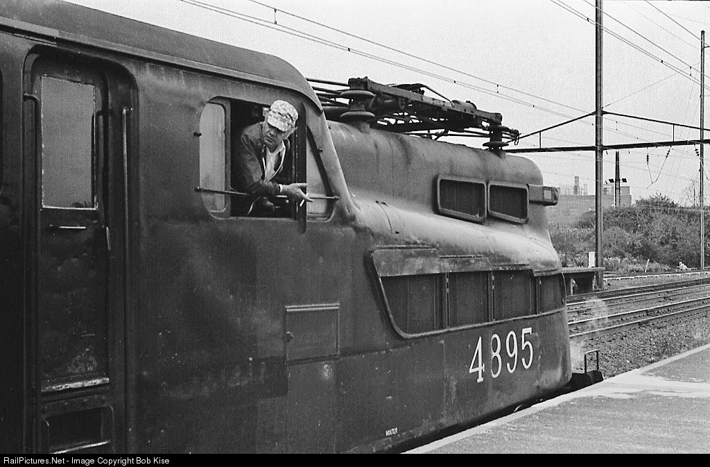 A GG-1 engineer awaits the highball to go west to Harrisburg. The 4895 was built in April, 1940 by PRR/Westinghouse.