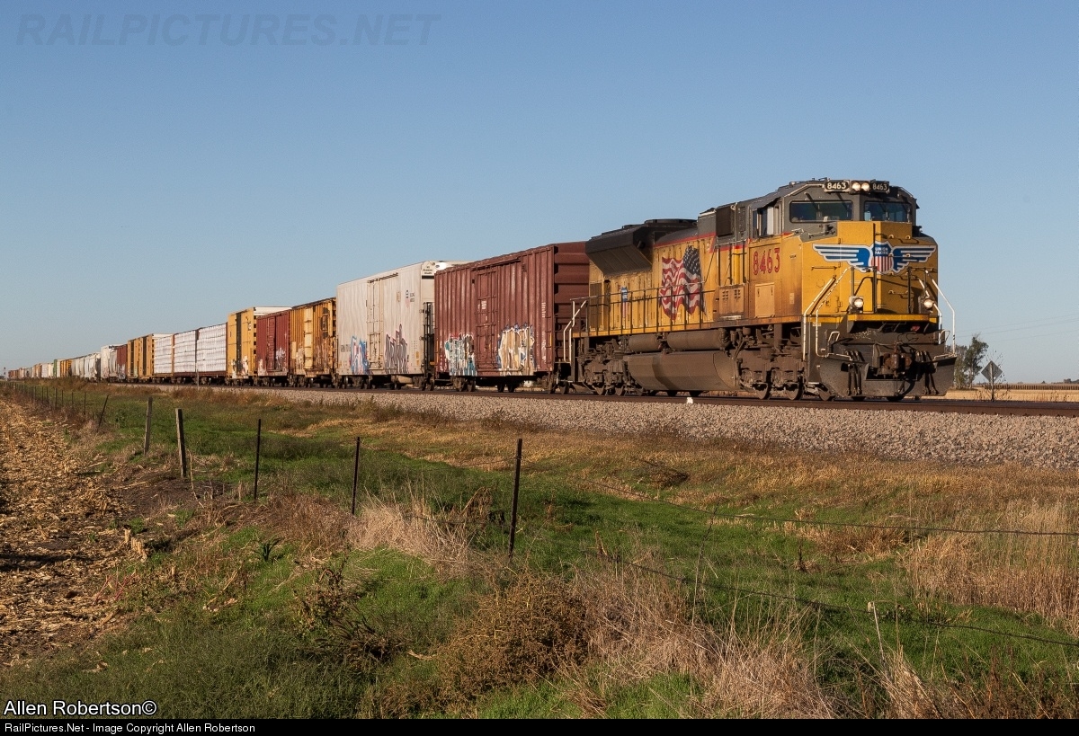 UP 8463 leads an eastbound manifest. Another ACe is on the rear.