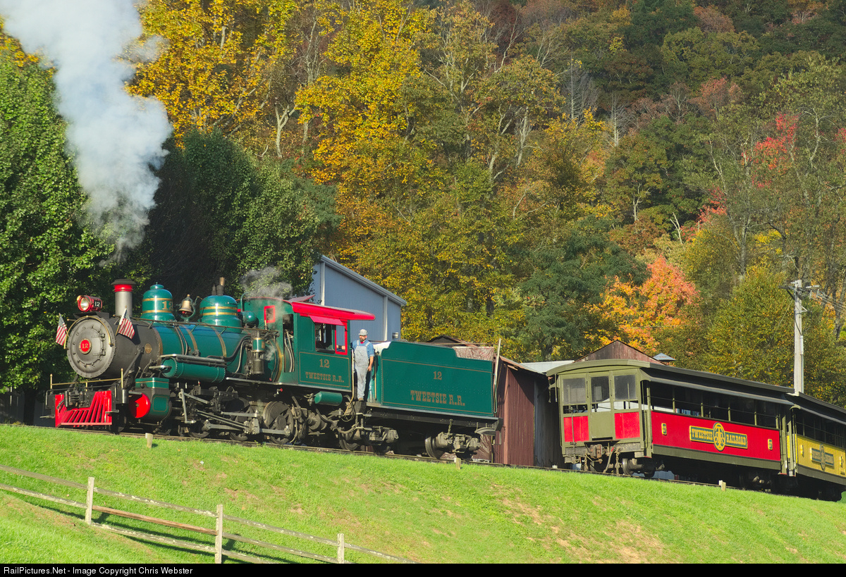 Tweetsie (ET&WNC) #12 has just been cut off from its train and is headed to the locomotive shop, as the sun sets on another fun-filled day at the Tweetsie Amusement Park!