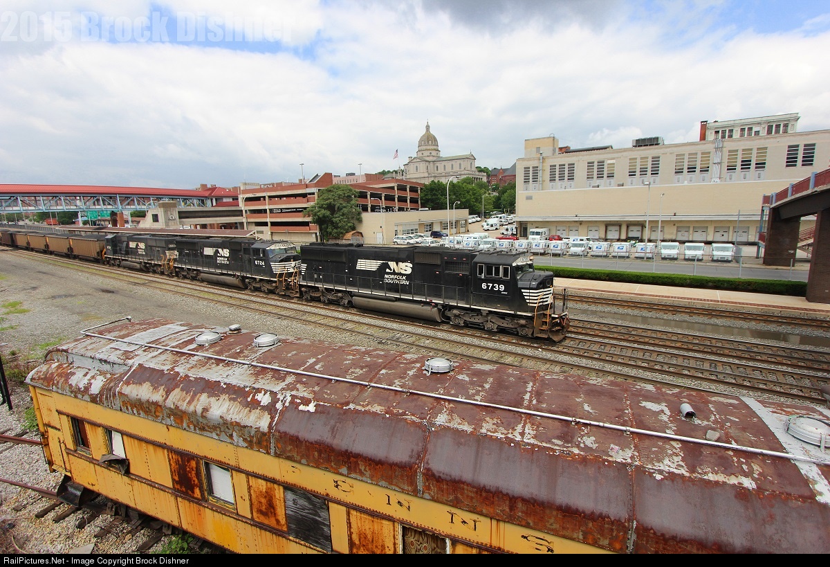 NS 6739 is making its way through Altoona, Pa. It has just defended the Horseshoe Curve (HSC). This train is slowing down so that it can cut the rear SD40E helpers off. With going down the steep grade from Cresson to Altoona, most trains like coal, freight, etc have helpers to either get them up and over or down.