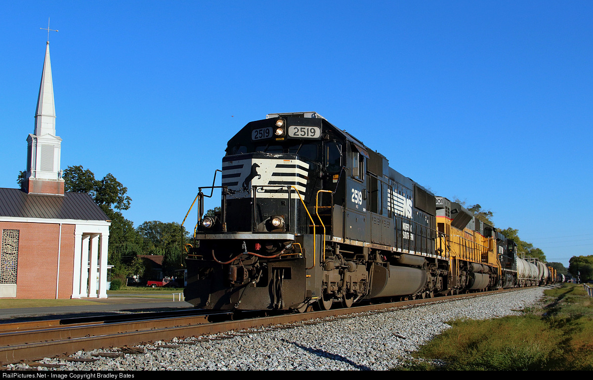 | NS SD70 #2519 leads Norfolk Southern Train 187 West through the town of Sylacauga, AL. Bound for Norris Yard in Irondale, AL. |