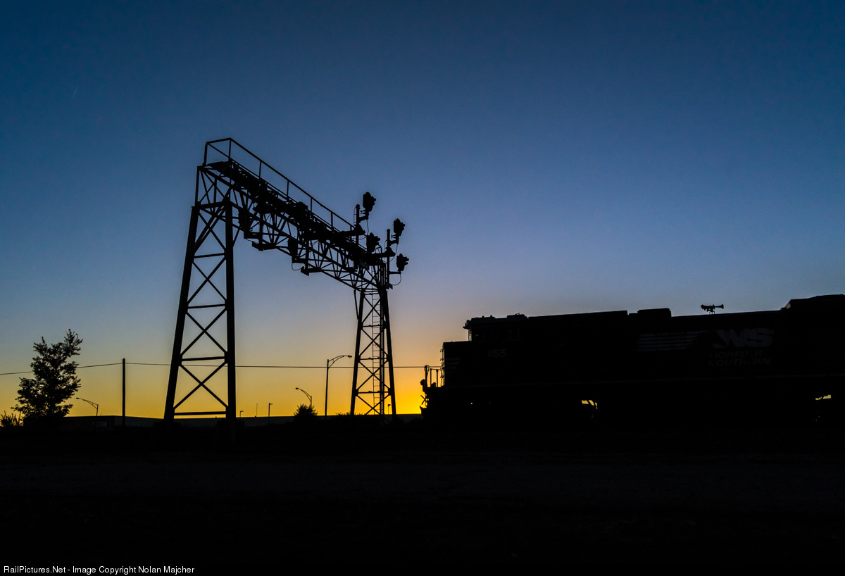 | A Westbound NS manifest led by an EMD SD70ACe thunders under the NYC Signal Bridge at MP 192 on the former NYC Waterlevel Route in Brookpark, Ohio with a gorgeous sunset in the background. These signals are on borrowed time, as the replacements are already partially assembled just about a quarter mile East of the NYC Signal Bridge. |