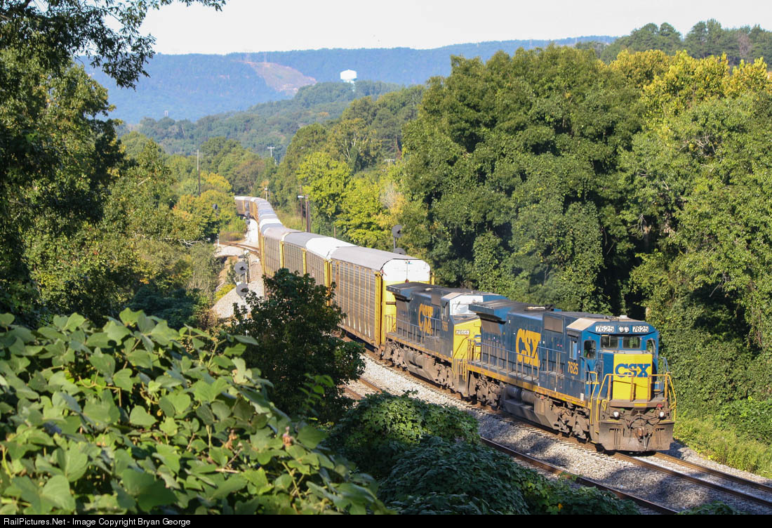 After a quick crew change at Lookout just on the other side of the bridge, loaded auto train Q211 rolls past the kudzu-covered vantage point on its way to Atlanta.
