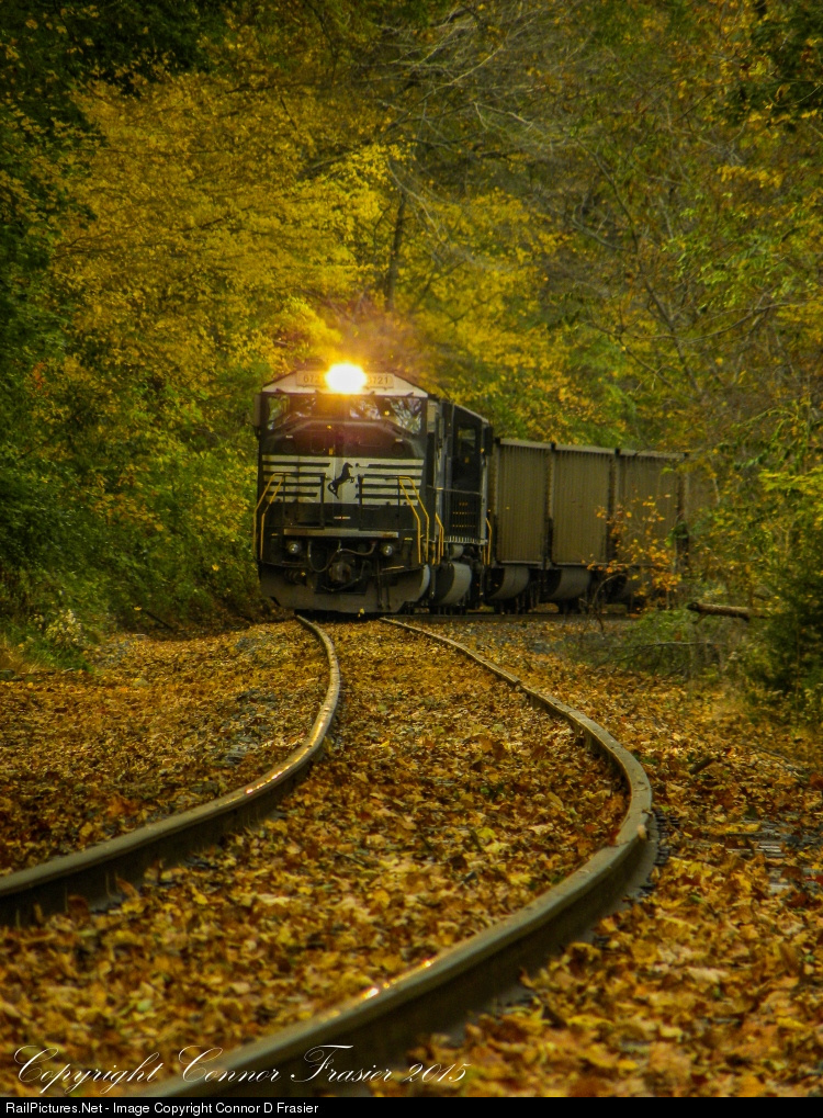 A coal drag makes a very rare appearance on the NS Portland Secondary on a cool Fall afternoon as 535 creeps on the rarely used trackage north of Roxbury industrial split at Harmony, NJ. The train is heading to the PPL power plant at Martins Creek, Pa. The Portland Secondary, which splits off the Lehigh Line at Easton, PA, was once a very busy line serving two power plants with coal as well as a pair of freights just under a decade ago. But with how today's coal situation is, just the two local freights use the line.