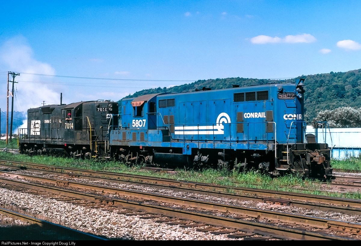 | Shortly after Conrail’s formation, the Mingo Junction/Wierton area was celebrated as a stronghold for Alco Centuries in ore service. It was also a good place to see first generation power, like this GP7/GP9 combo rolling light through Wierton. |