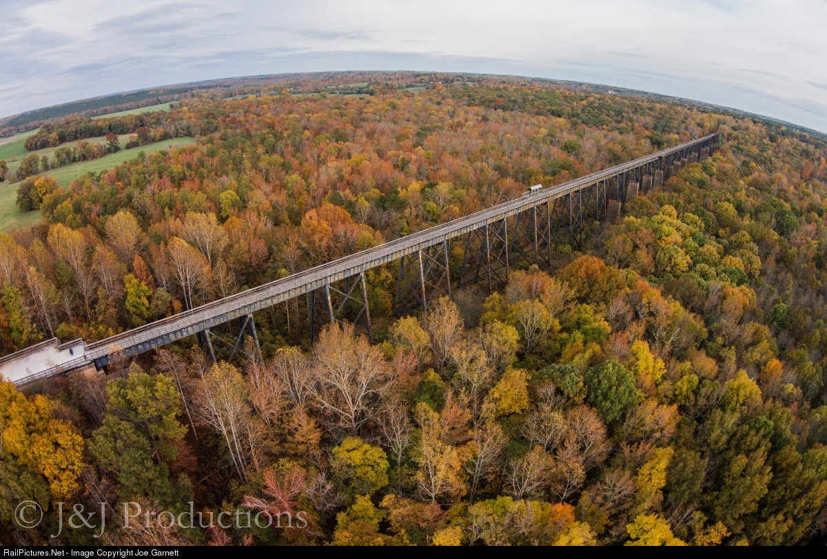 High Bridge State Park, located in Farmville, Virginia is nearly 2400 feet long, and reaches 170 feet above the Appomattox River. Originally constructed in 1854 by the Southside Railroad, stating that at the time, it very well may have been the longest and tallest bridge in the world. However, in April of 1865, the Battle of High Bridge raged on just days before the Surrender at Appomattox, leaving the bridge nearly destroyed. After the war, this bridge was reconstructed by 1870, and re-open shortly there after. 50 years later, the Norfolk and Western built a much friendlier line around the High Bridge, which was favored due to the lower grades, and by the early 2000's, this line was finally abandoned for good. It is now a State park, and you can walk approximately 32 miles of the old "Farmville Line", going 16 miles in either direction of the bridge.