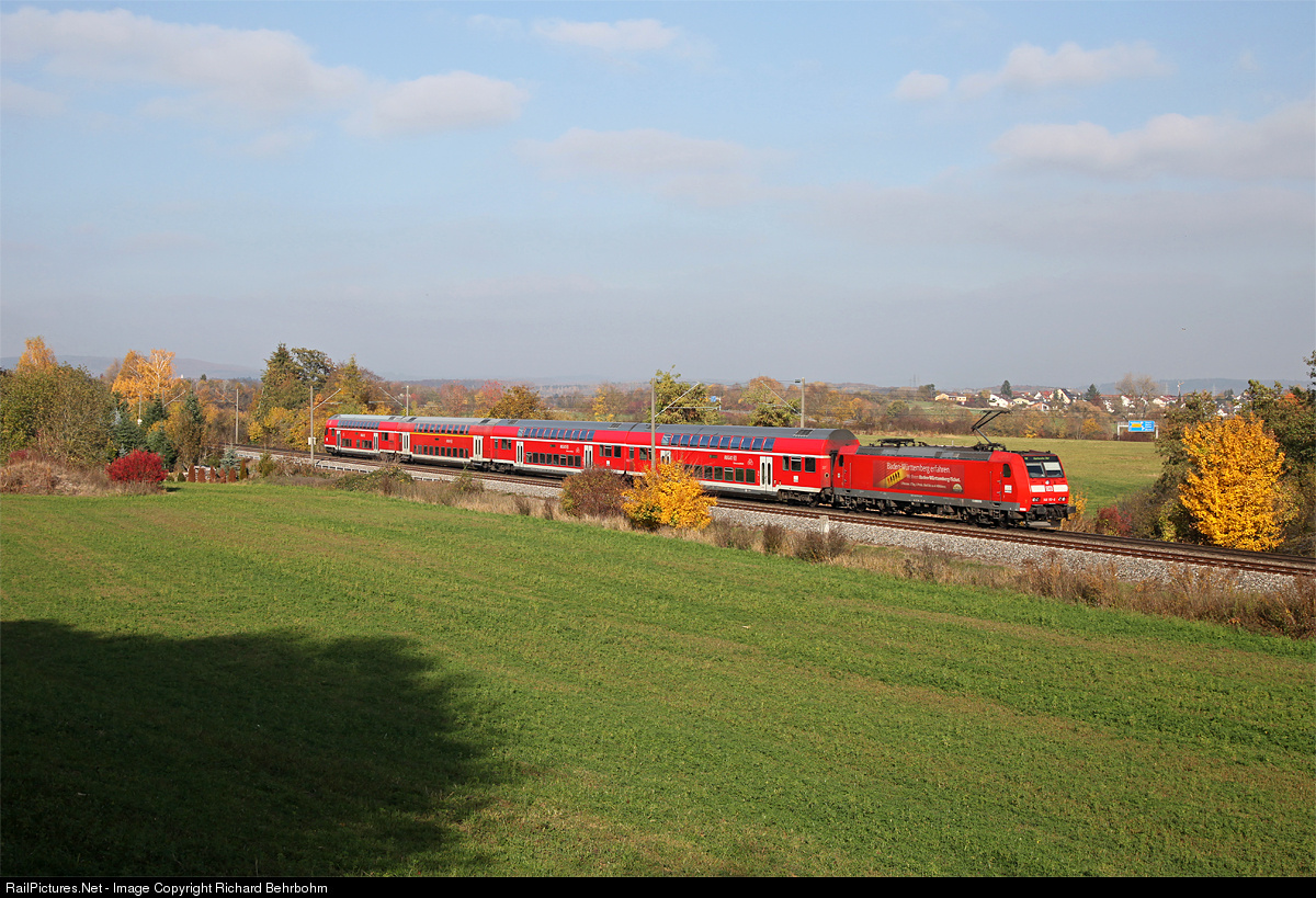 | A push-pull train of "Schwarzwaldbahn". 146 113 is pushing a RegioExpress Konstanz - Karlsruhe, this line leads through the Black Forest. |