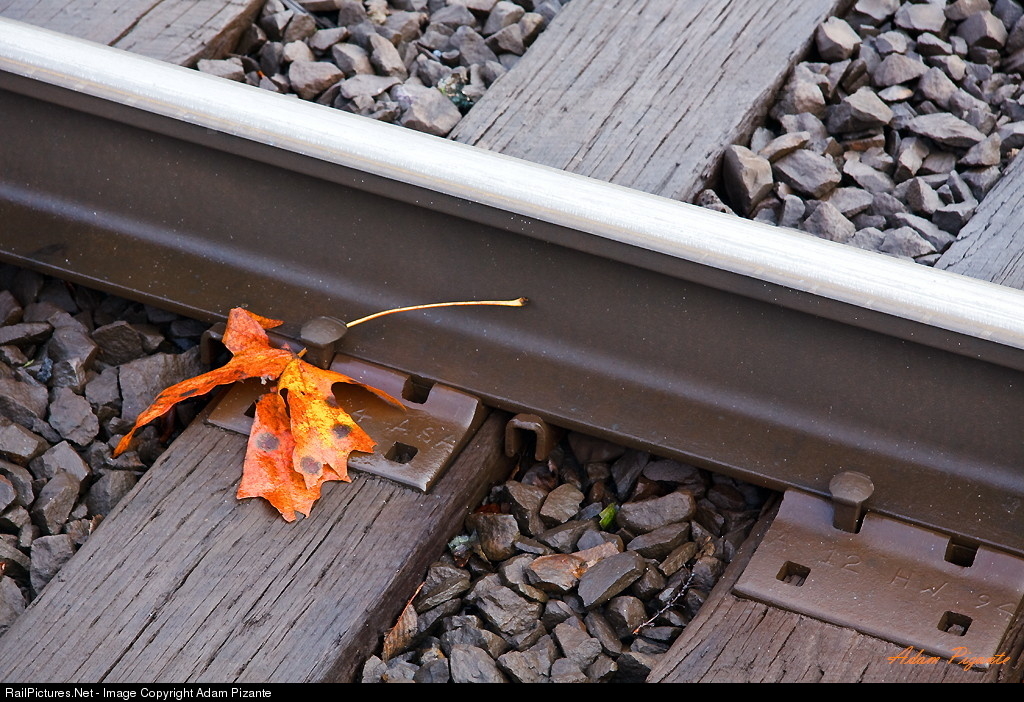 Fall in the Pacific North West is bursting with color, and this image of normally muted colors of railroad tracks is transformed with this colorful autumn leaf.