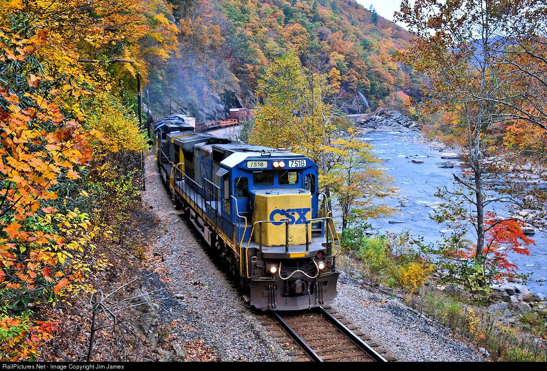 Since the completion of the Carolina, Clinchfield & Ohio railroad in the early 1900's the Nolichucky River Gorge has seen the passage of many trains, specifically coal trains headed to many different electric power generation plants in the Carolinas, Georgia and Florida. CSX began re routing coal movements away from this route mid October in favor of a Russell/Decoursey/Corbin/Atlanta route and their I-64 corridor through Clifton Forge/Richmond. For now only two regularly planned Manifest trains operate on this route between Kingsport, TN and Hamlet, NC. This day's Q696 has fourteen cars.