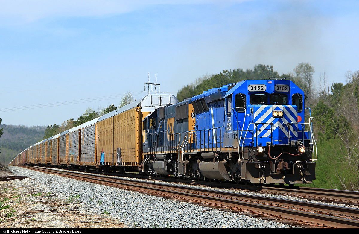CEFX "Blue Bird" SD40M-2 #3152 leads CSX Rack Train Q235-12 South through Lineville, AL.