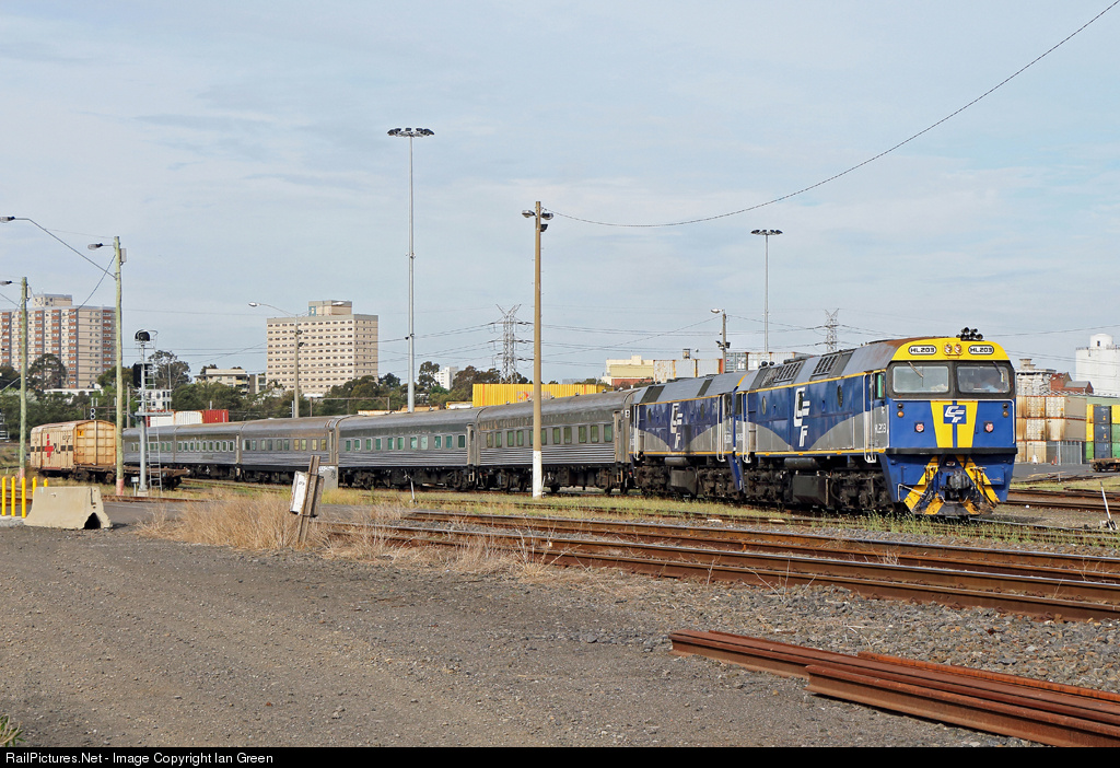 Returning patrons to NSW after a day out at the Melbourne Cup, HL203-FL220 depart North Dynon Yard with 6L68 Southern Aurora special to Canberra.