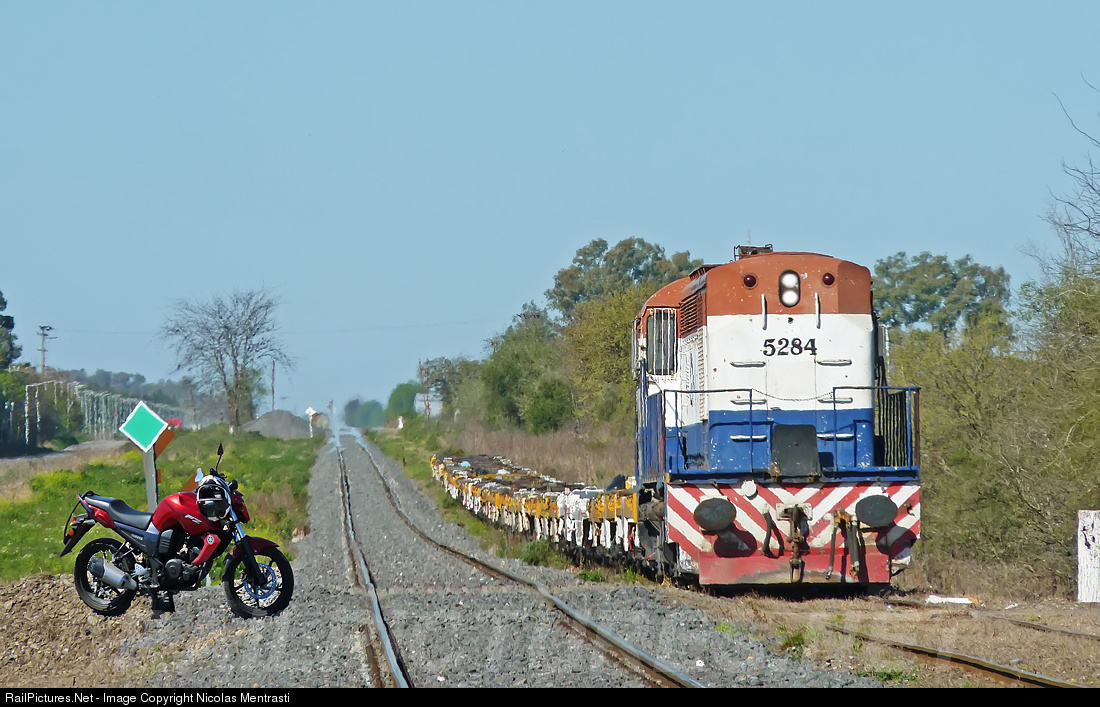| Don´t miss me, I´ll be back... GAIA locomotive with a empty train near Lima on the old track. At the left the new track and a Yamaha FZ bike. |