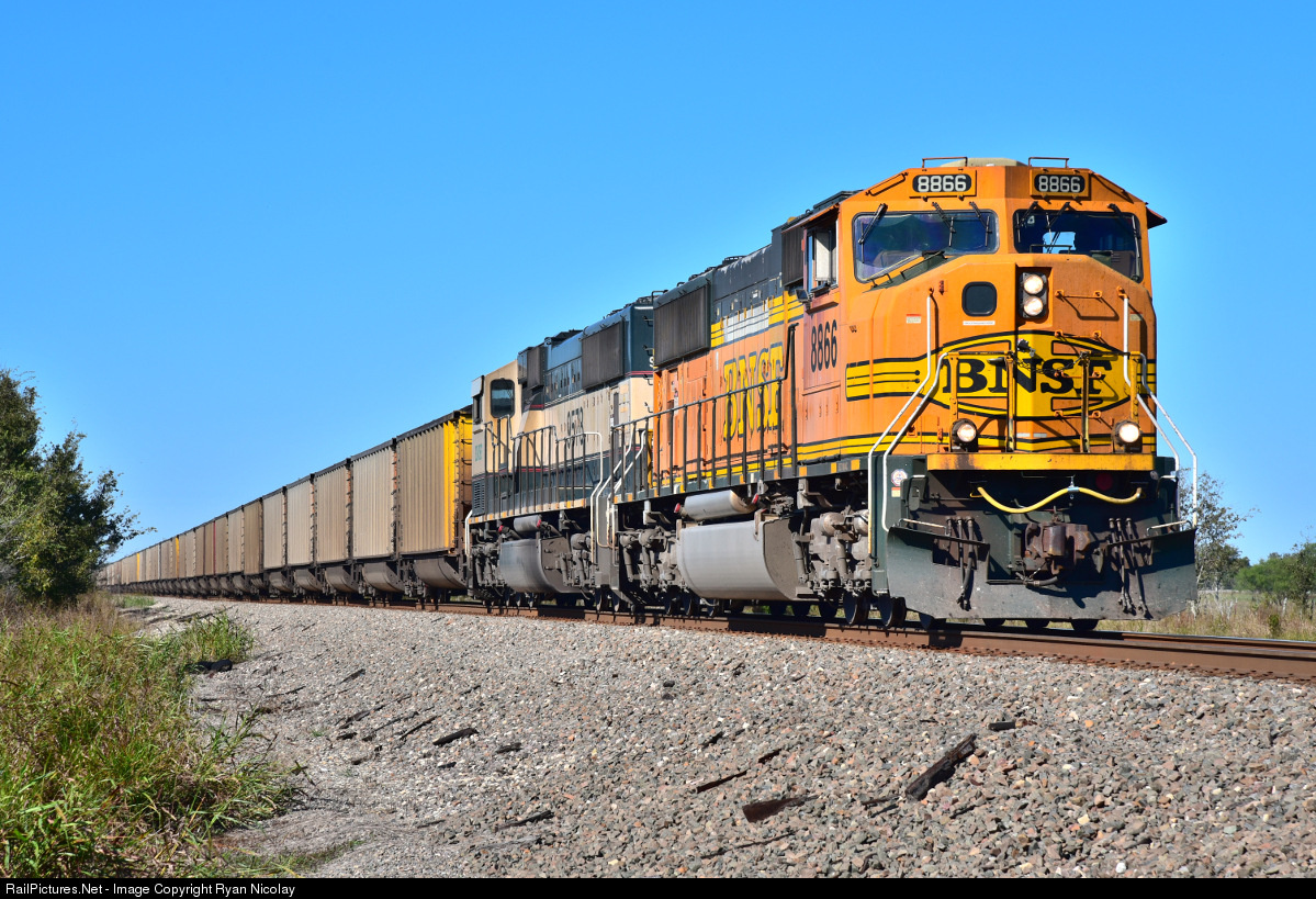 RailPictures.Net Photo: BNSF 8866 Burlington Northern Santa Fe EMD SD70MAC at Wallis , Texas by Ryan Nicolay