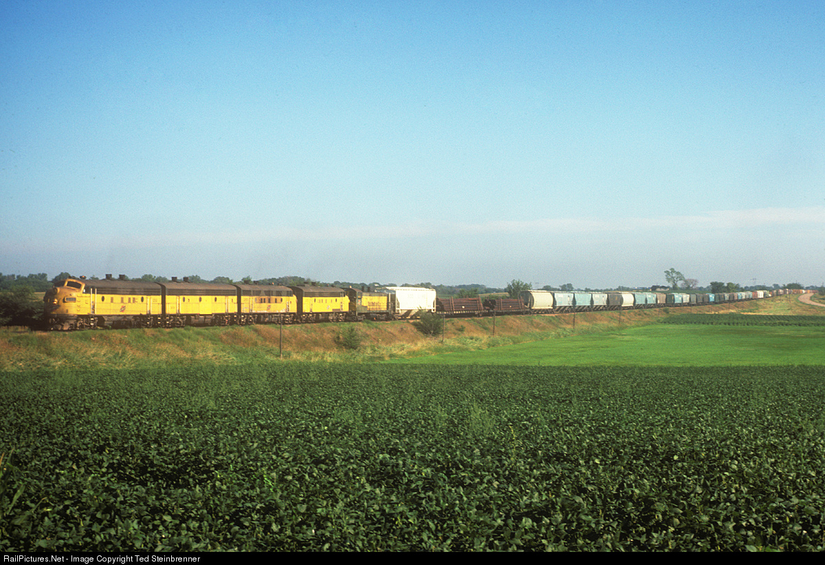 CNWs secondary lines in Minnesota offered some interesting motive power into the early 1980s. In addition to the famed "Alco" line, the former Minneapolis and Saint Louis, which crossed the Alco line at Waseca, could provide some interesting consists, particularly during the grain rush. By 1980, the CNW had retired the majority of its F-Unit fleet, but a number of former Chicago Great Western F3s were kept around when extra power was needed. Here's F3A 211, F3B 309, F3A 205, and F3A 215 leading a long train north of Waseca. One can see two vintages of F3s in this set, with 205 sporting chickenwire, but 211 and 215 wearing stainless steel grilles more commonly associated with F7s and F9s.