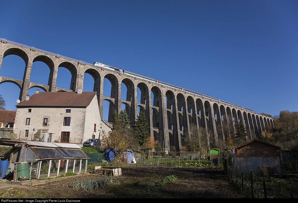 The Intercity Culmont - Troyes runs the famous "ligne 4" and crosses a small valley on the gigantic stone bridge of Chaumont.