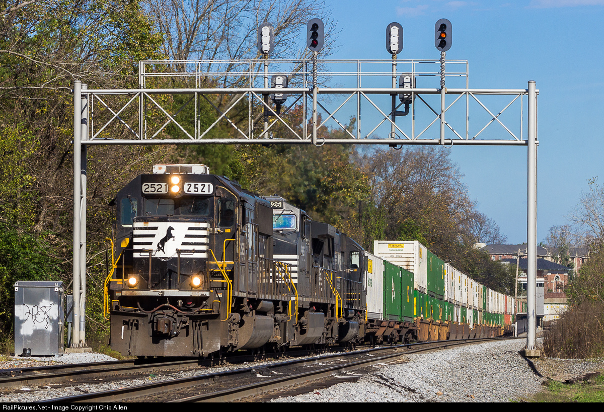After sitting for an hour, hotshot Rutherford, PA to Atlanta, GA intermodal train 203 has gotten a route into Inman Yard and is pulling to Birmont Junction, where the former Southern Piedmont Division mainline crosses the former ACL and enters the Georgia Division into Inman Yard.