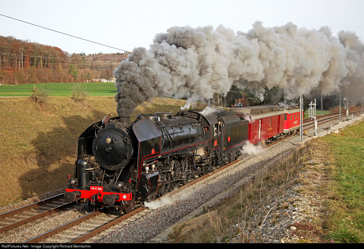 | 141R 568 was based since 2006 in Schaffhausen. Today the steam engine has left this city and was running to Vallorbe (border station Switzerland-France), the new home of this French steam lcoomotive. |