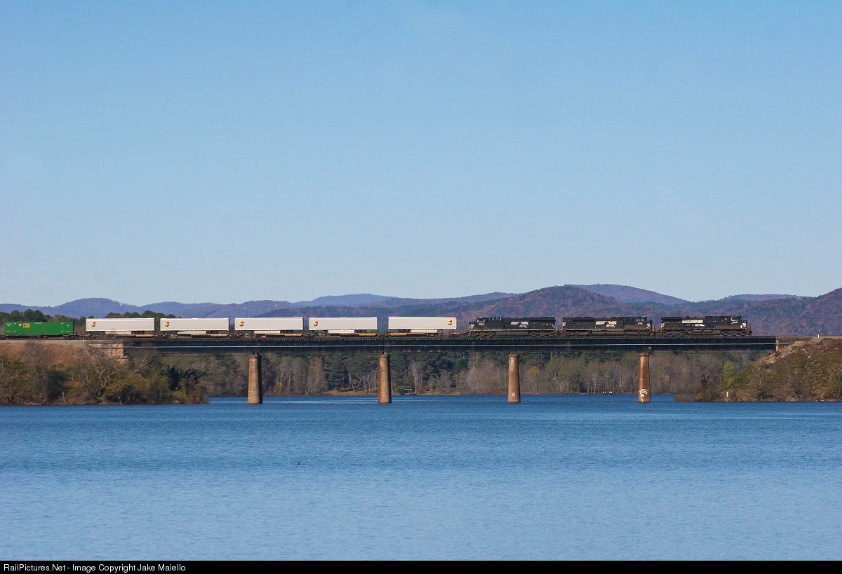 | A late-running 212 finds itself crossing the Tugaloo River on a beautiful November morning. The train has just crossed into South Carolina and is one step closer to it's destination, Croxton, NJ. |