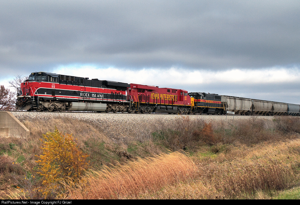 The colors of the Iowa Interstate! 513, the first Iowa Interstate Heritage engine leads the 516, the 30th anniversary engine trailed by GP38-2 601 in the standard IAIS paint scheme.