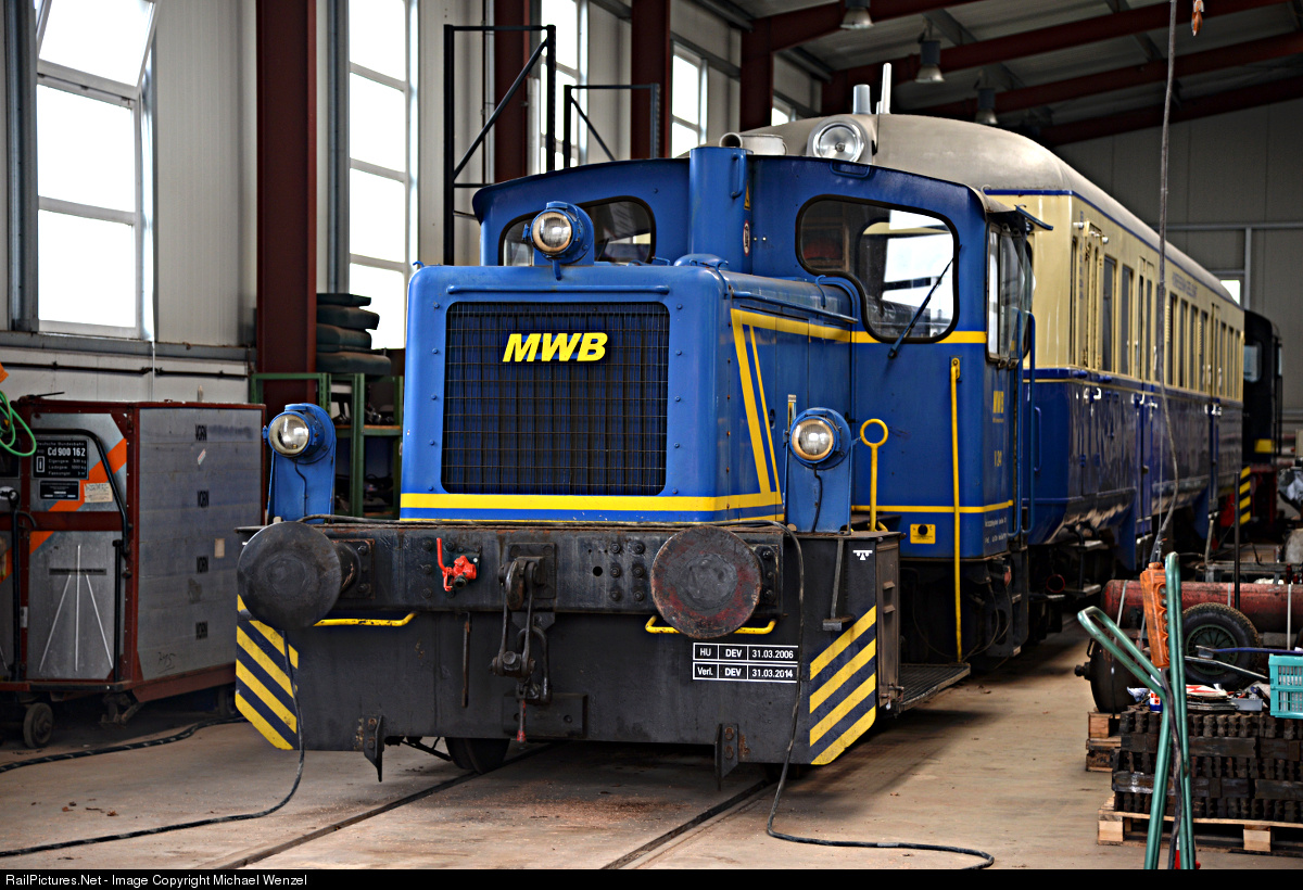 V241 (ex MWB Mittelweserbahn) / DEV Deutscher Eisenbahn Verein, (DEV is a a museum-railroad) in the Workshop of VGH Verkehrsbetriebe Grafschaft Hoya in Hoya. VGH is today a part of MWB / EVB. The locomotive is still in paint scheme of MWB the former owner. Only the inspection date shows the owner. But it looks like MWB still uses the engine. Built was this engine by german locomotive factory "Gmeinder"and delivered to DB Deutsche Bundesbahn in1959, owner until 1997. The DB number was 332 002-5.
