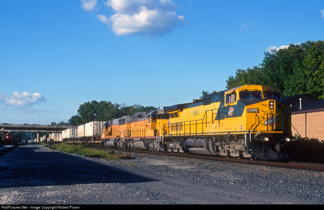 Conrail SEAL did not often run with foreign-road power, but on this day it was dispatched out of Selkirk with a CNW C44-9W leading a Union Pacific SD40-2 and SD50. At this point in time a block of intermodal traffic was being added to the train at Selkirk ahead of the usual manifest traffic. The nose of a Canadian Pacific SD40-2 can be seen at the NYS&W engine terminal at left in the distance.
