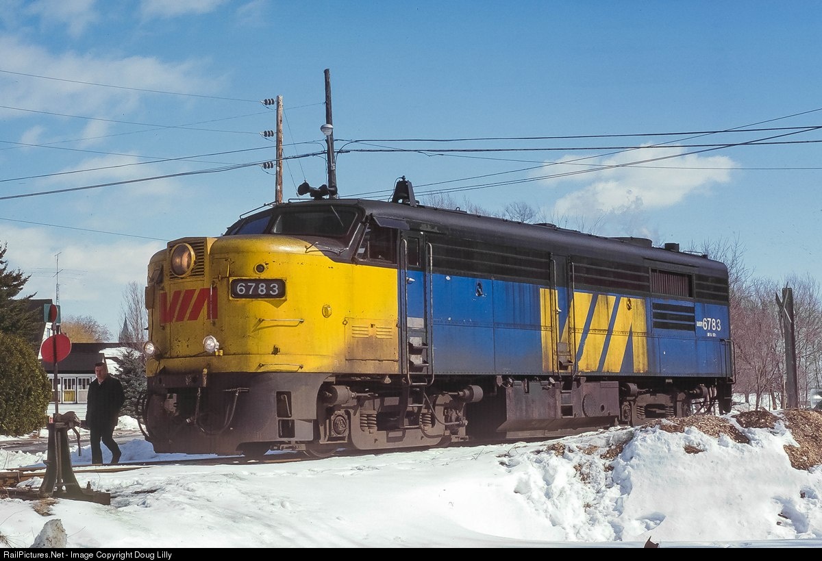 VIA’s service between Ottawa and the west was (and still is) accomplished by the time-honored practice combining trains from Ottawa over the CP with trains from Montreal over the CN in Brockville, Ontario. Some friends and I headed to Smiths Falls to shoot the morning westbound making its station stop in Smiths Falls, and we then headed to Brockville to record the Ottawa train’s arrival. Exploiting the power of my ’83 Mustang GT, and stretching the posted speed limits by more than the local authorities would have likely tolerated, we arrived in Brockville only to fine that the train had totally smoked us, and was waiting for its connection from Montreal. Later, when the power approached the CP wye in Brockville, we asked the crew how they possibly could have beaten us. We learned that the track speed limit was 70, but with the addition of the crew-supplied ditch lights attached to the nose of the unit, the train was allowed to do 90! That crew was quite proud of those portable ditch lights.