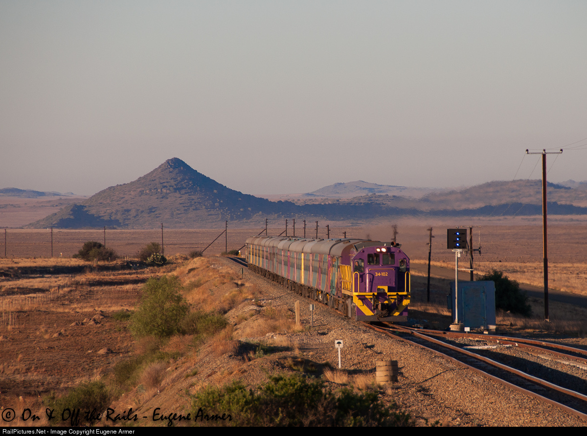 RailPictures.Net Photo: 34-102 Shosholoza Meyl Class 34 (GE U26C) at Edenburg, Free State province, South Africa by Eugene Armer