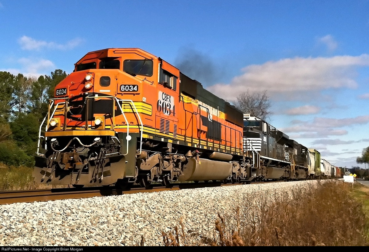 | CBFX SD60M #6034 leads southbound Norfolk Southern manifest train #334 through Plainville, Georgia, milepost 66 of NS's Atlanta North District at a fast clip. |