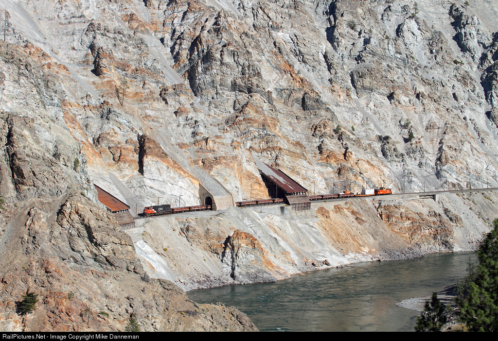 Battling the ongoing effort to keep the Canadian National route through White Canyon open is a work train passing through multiple rockslde sheds between Morris and Lasha, British Columbia. This scenic canyon along the Thompson River requires constant attention from what nature dishes out, and this train will soon be loading more fallen rock into its 11 Difco dump cars for removal to Spences Bridge.