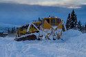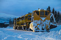 After helping free a snow bound train north of Talkeetna the snow fleet with spreaders 8 & 9 and GP40-2s 3010 & 3007 were sent further north to clear sidings as far north as Healy. Seen here arriving at Hurricane with the Alaska Range providing a magnificent back ground.
