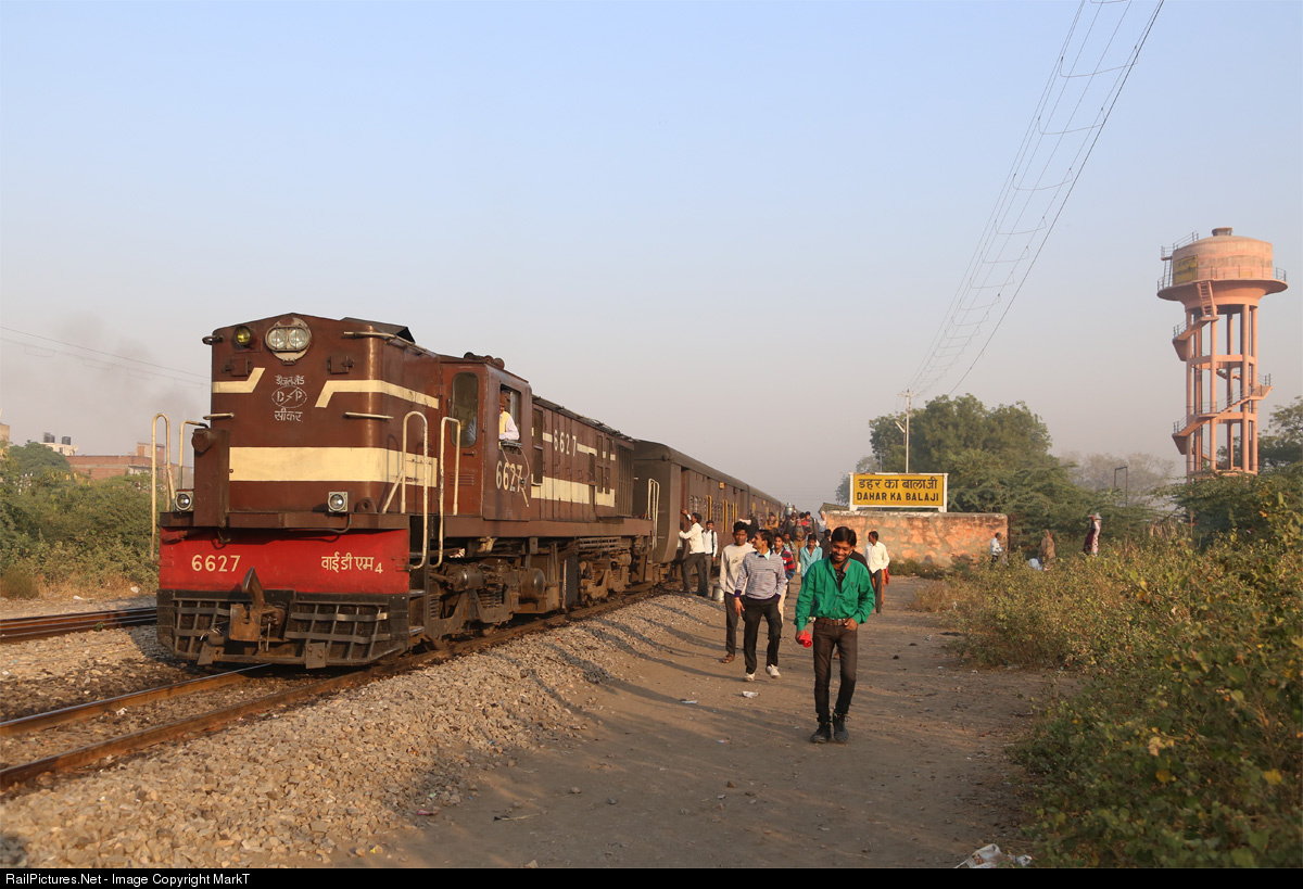 | Whilst Jaipur might be modernising as a city with its new metro system, a size able number of its daily commuters are still arriving on Metre Gauge ALCO power.... Here they file off the train at Dahar Ka Balaji on the edge of the city where they catch buses onwards to their offices. |