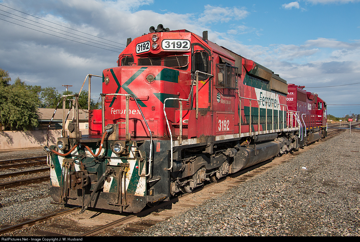 | A colorful pair of EMD's in the form of a Ferromex SD40 rebuild and a Helm GP38-2 await their call to duty on a crisp November morning in El Centro, CA. |