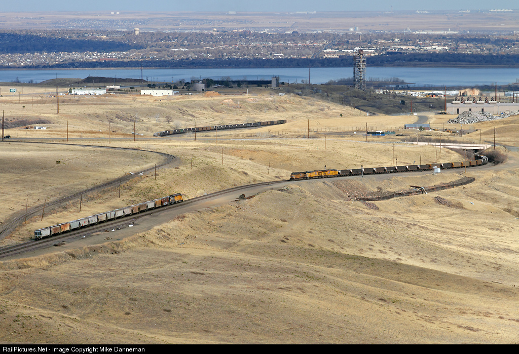 Union Pacific’s west local has just come off of Rocky Spur and slowly heads east on the main while a westbound coal train passes on the siding at Rocky, Colorado, on March, 16, 2011.