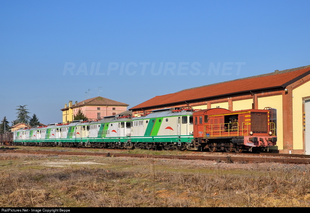 On the side of a shed, in the foreground we can see an old diesel locomotive: LD.62 belonged to FSF (Ferrovia Suzzara-Ferrara) merged some time in FER, and 6 electric locomotives FER class E.640 (former series 342 Slovenian Railways) These materials are practically struck off, I hope that perhaps in some cases will be preserved.