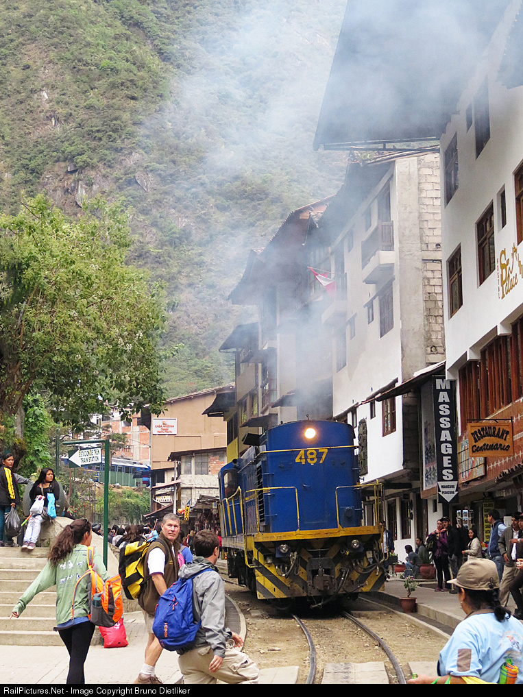 | This loc runs through the village Aguas Calientes to the passenger station. The train with this loc (and two others) in the station Aguas Calientes you see on #556038 |