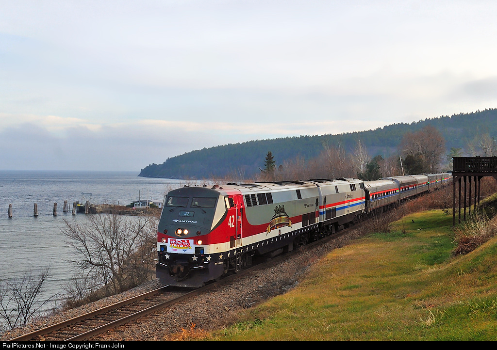 RailPictures.Net Photo: Amtrak 42 Amtrak GE P42DC at Port Kent, New York by Frank Jolin