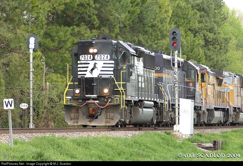 NS 7024 goes through the signals at MP 544 enroute to Forrest Yard.