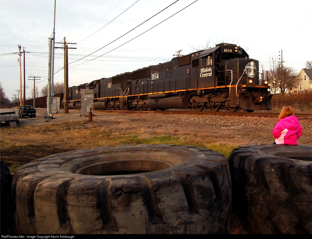 | I've been away from the trackside scene for about 3 years as you see the higher priority reason in her high priority "Vizzy-pink" coat as we watch IC 1034 South momentarily bisect Branchton Rd. with a long train of hoppers running down the CN Bessemer Sub. This is both my daughter's and my first non-orange Bessemer train, and it kind of brought a little heartache in knowing that it is no longer the Bessemer, but it does appear like business is picking up a bit so I guess I'll take the minor change in appearance. |