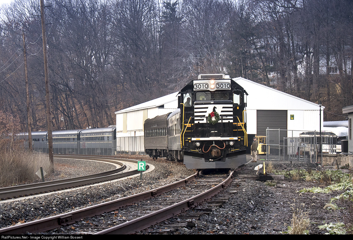 Norfolk Southern H-02 with a wreath on its nose just picked up two vintage passenger cars on loan from the United Railroad Historical Society at the former Boonton Lackawanna freight house. The consist will then head East for an interchange with the NYS&W at Saddle Brook NJ. |