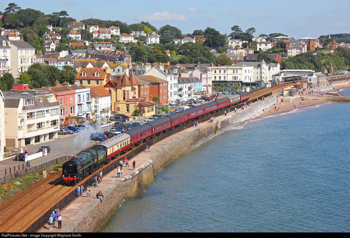 70000 'Brittania' passing the iconic coastal section of line at Dawlish with a railtour.