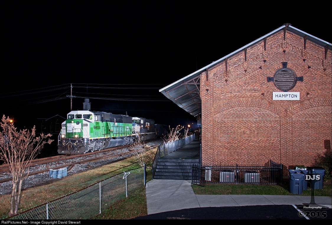 | SD60M 6024 is in charge of NS train 139 as it makes it's way down the less traveled Griffin District, the train is seen passing the former Central of Georgia depot in Hampton. |