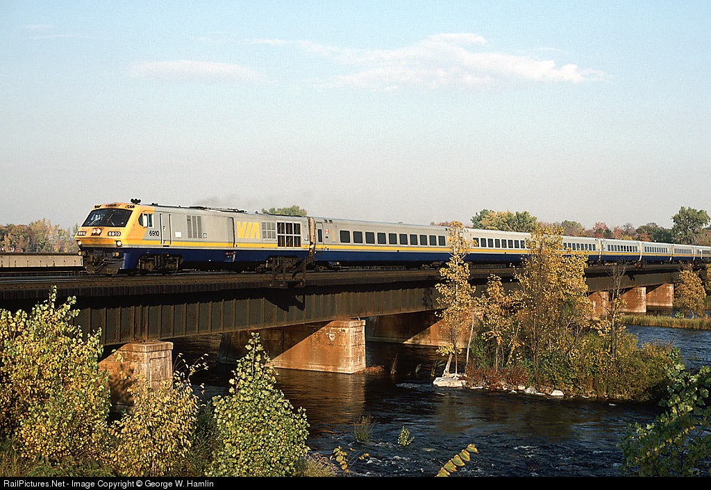RailPictures.Net Photo: VIA 6910 VIA Rail MLW LRC at East of Dorion, Quebec, Canada by George W. Hamlin