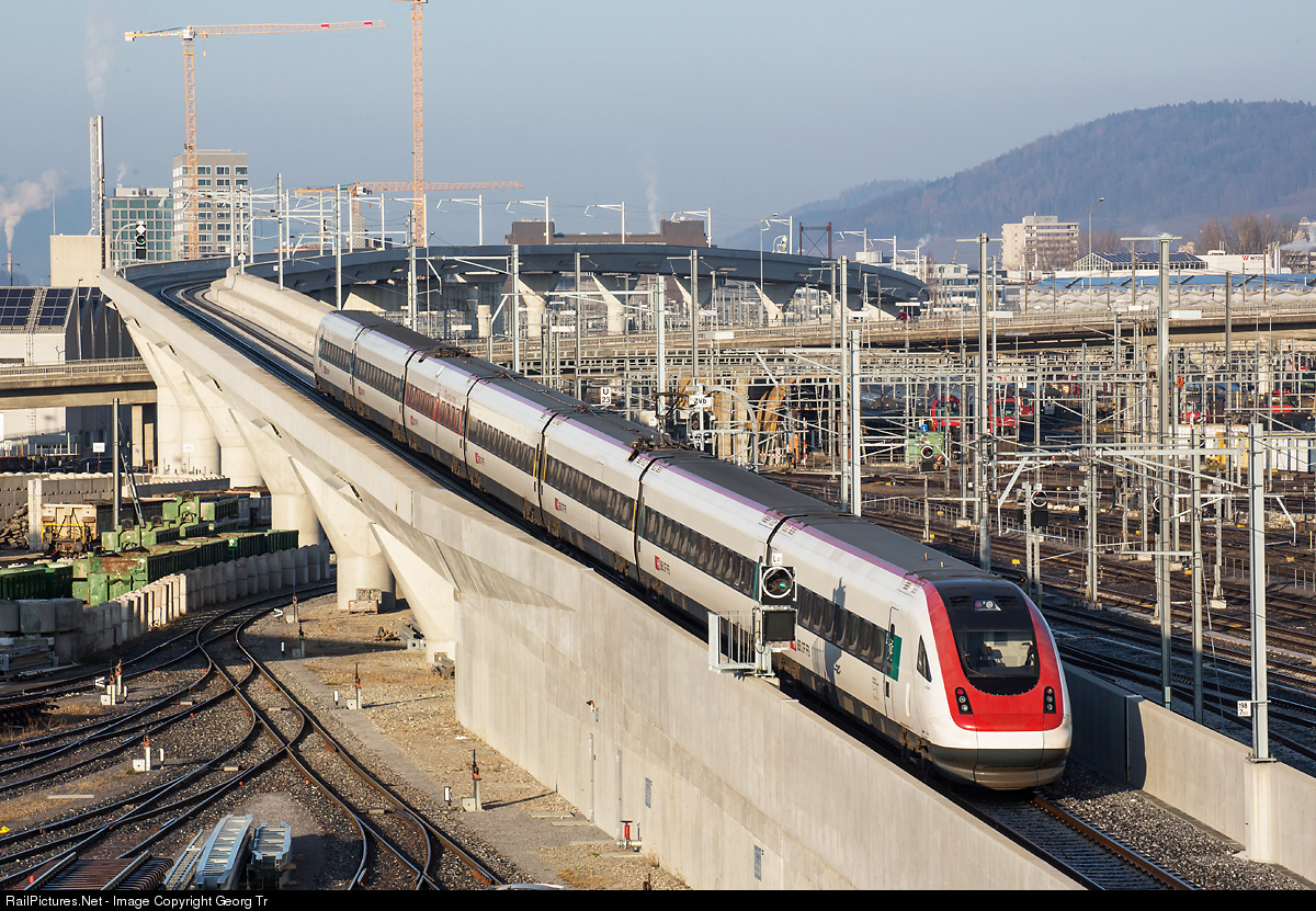 | With the change of timetable on december 13th, the new bridges of the Durchmesserlinie (DML)/diameter line came in service. ICN RABDe 500 031 "Louis Favre" is on the 2.7 % grade up the Letzigraben bridge, with 1156 meter the longest railway bridge in Switzerland, bringing the trains on the other side of the large track field between Zürich main station and Zürich Altstetten. |