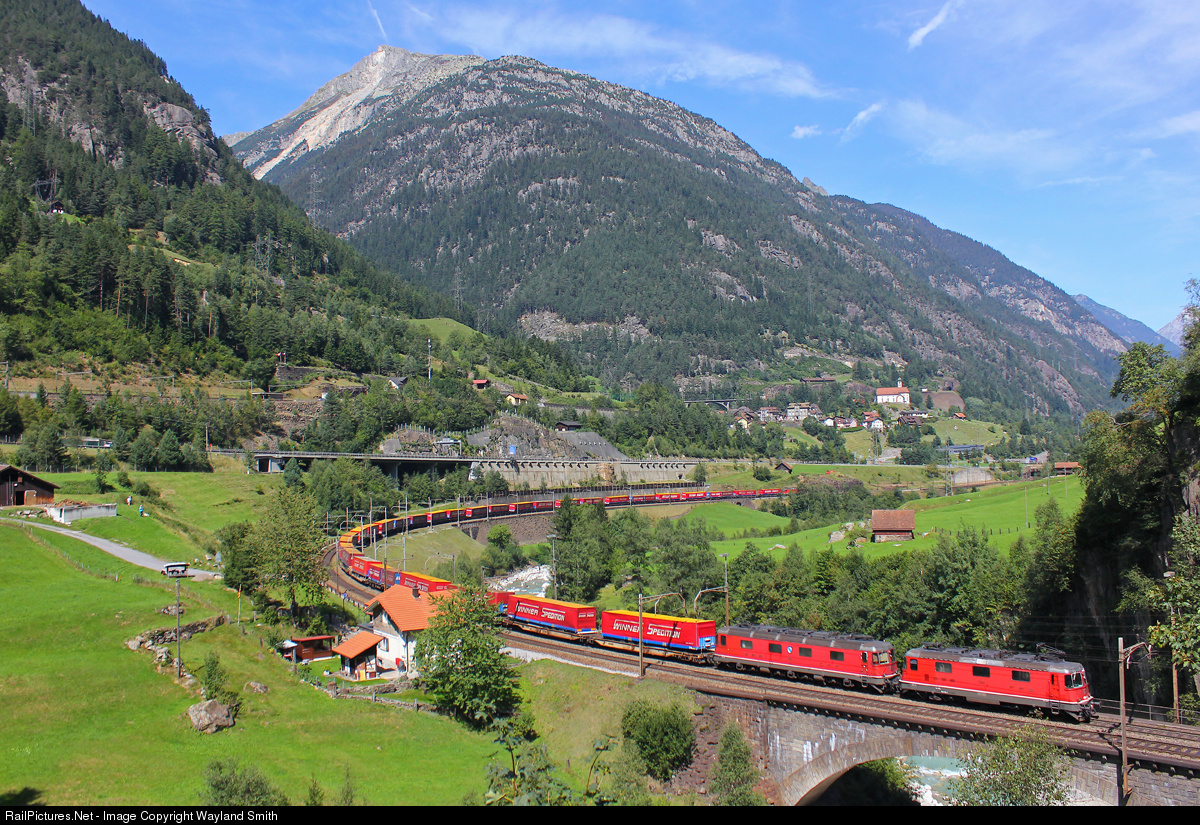 A very well laden intermodal train on the Gotthard route at Wassen.