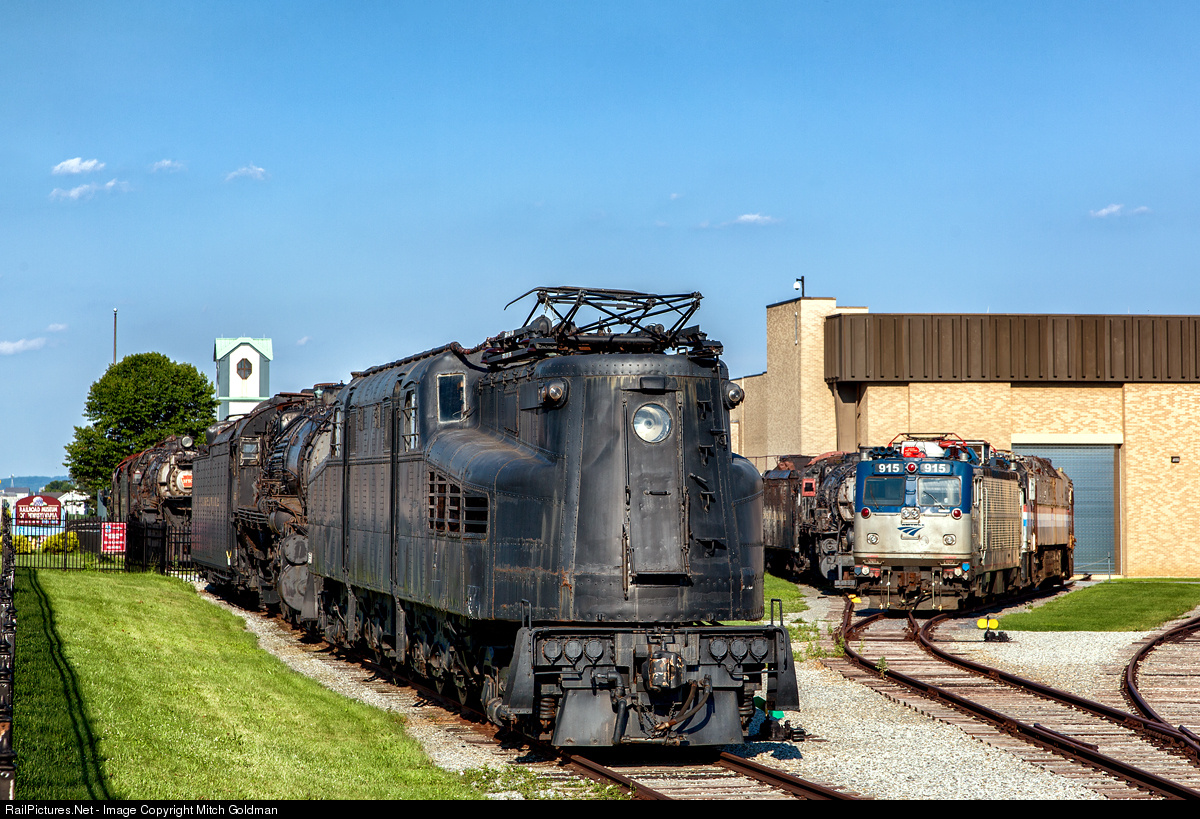 PRR's #4800, "Old Rivets" sits on display outdoors next to "newcomer", Amtrak AEM-7 #915. Just behind the "Toaster", is a venerable Amtrak E-60 #603. Three generations of electric "motors" that had once roamed the Northeast Corridor all in one place! The GG1 (built in 1934) came to the Museum as a gift from the Lancaster Chapter NRHS in March of 2000, while the E-60 (built in 1976) was purchased from Amtrak in December of 2003 and the AEM-7 (built 1981) was donated earlier this year in June, 2015 by Amtrak.