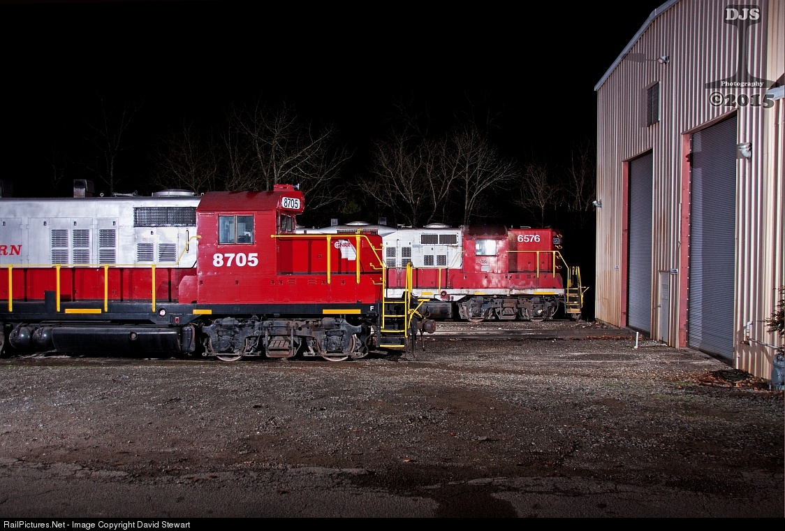 Now owned by Patriot Rail, operations on Georgia Northeastern still continue in much the same ways as before. Meanwhile GP18 Nº8704 and the last high hood unit on the roster, GP9 Nº6576 stand at the carrier's shop in Tate, Georgia.