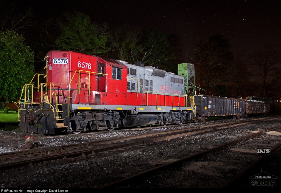 | The only remaining high hood on the Georgia Northeastern roster, GP9 NÂș6576 (Built 1/1958) stands in Tate, Georgia after making a late night run to the Polycor Georgia Marble Quarry Plant. |