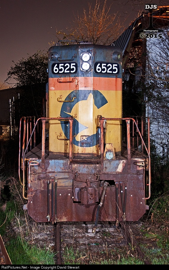 | Great Walton's GP9 6525 has yet to meet it's maker and is seen during another long night of being lost in time at Athens, Georgia. The 6525 has been doomed for the last several years, but despite its failures, it still holds on to a full Chessie System attire. It's condition structurally and mechanically has rapidly deteriorated during it's time on the Great Walton/Hartwell Railway. |
