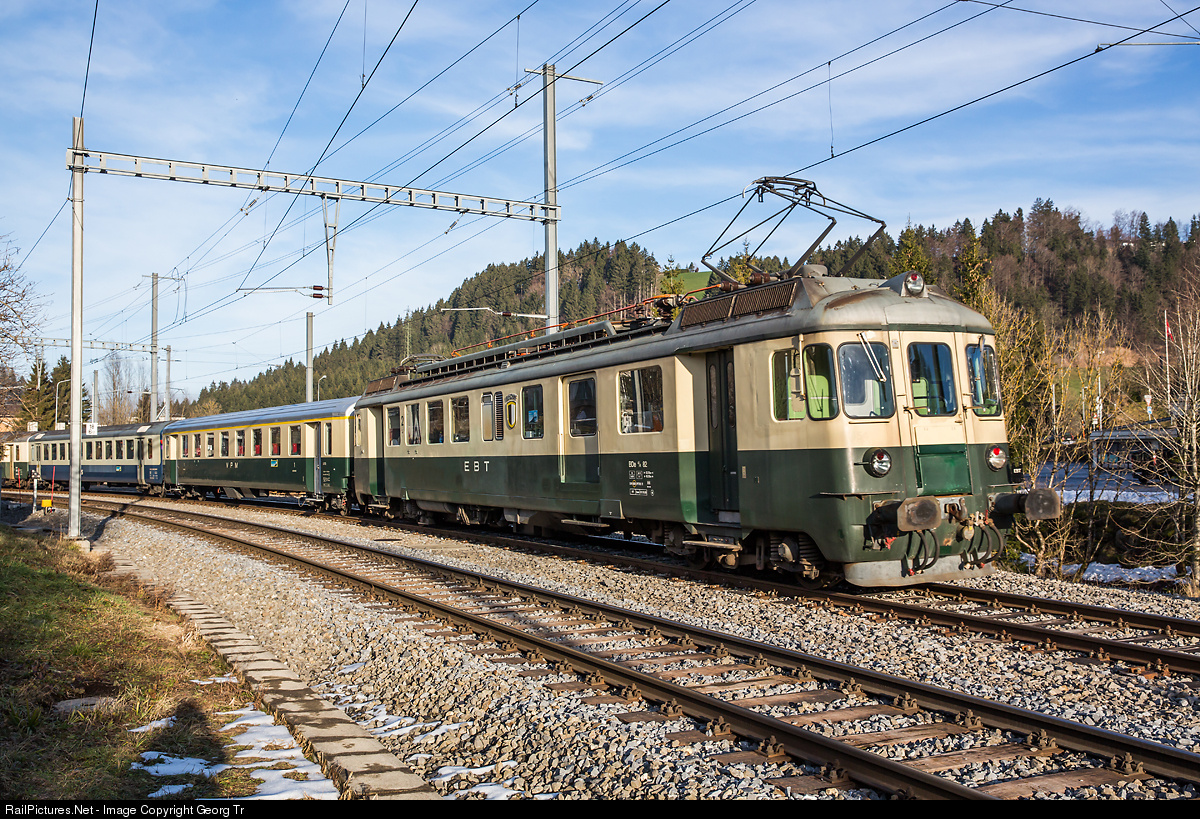 | Special train of association "Pendelzug Mirage" (VPM) to Einsiedeln, entering Biberbrugg, with railcar BDe 4/4 # 82 (former Südostbahn). |